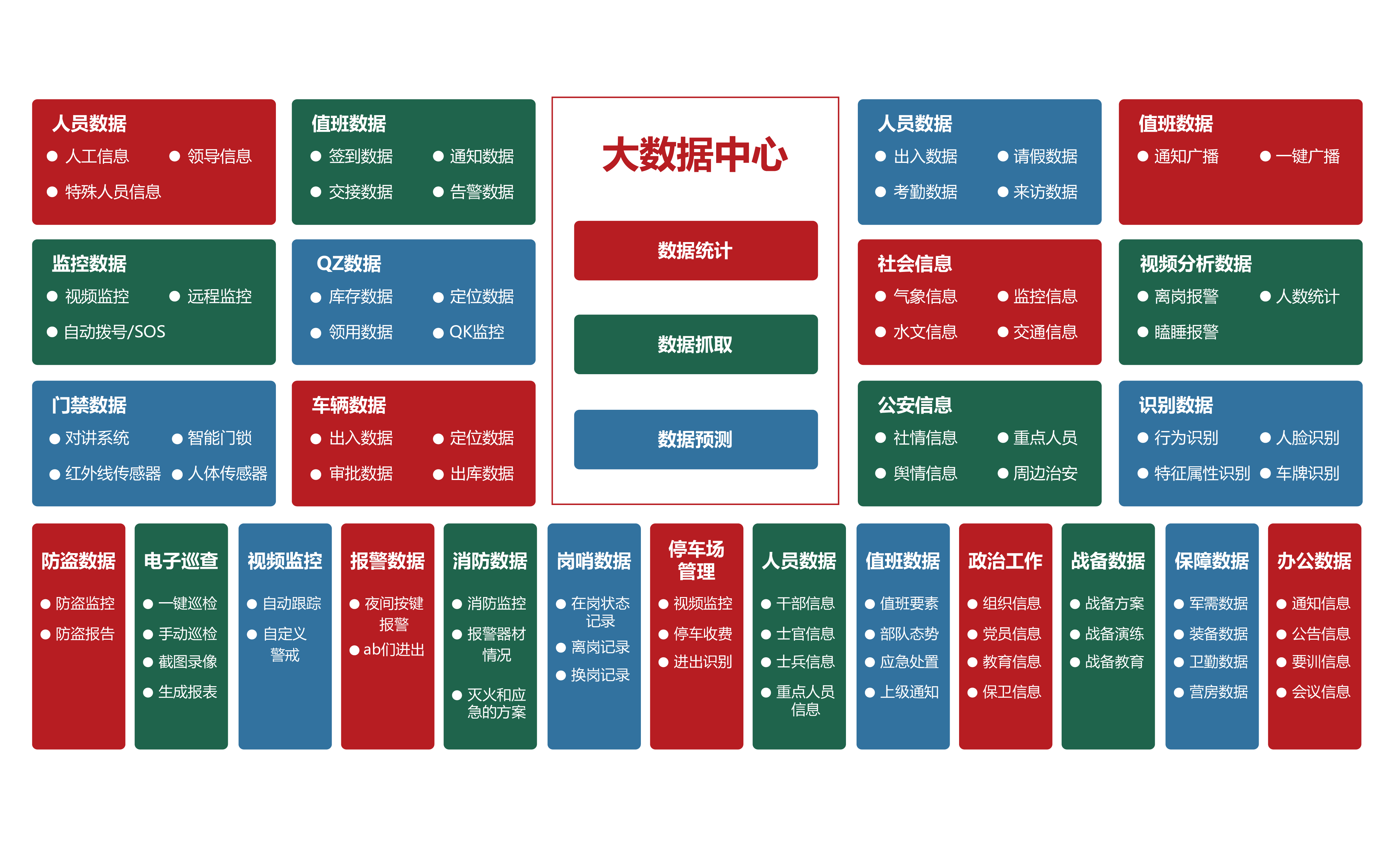 部隊管理系統 機關辦公系統 軍事教育系統 智慧政工系統 軍事訓練系統 后勤保障系統 智慧安防系統 裝備管理系統